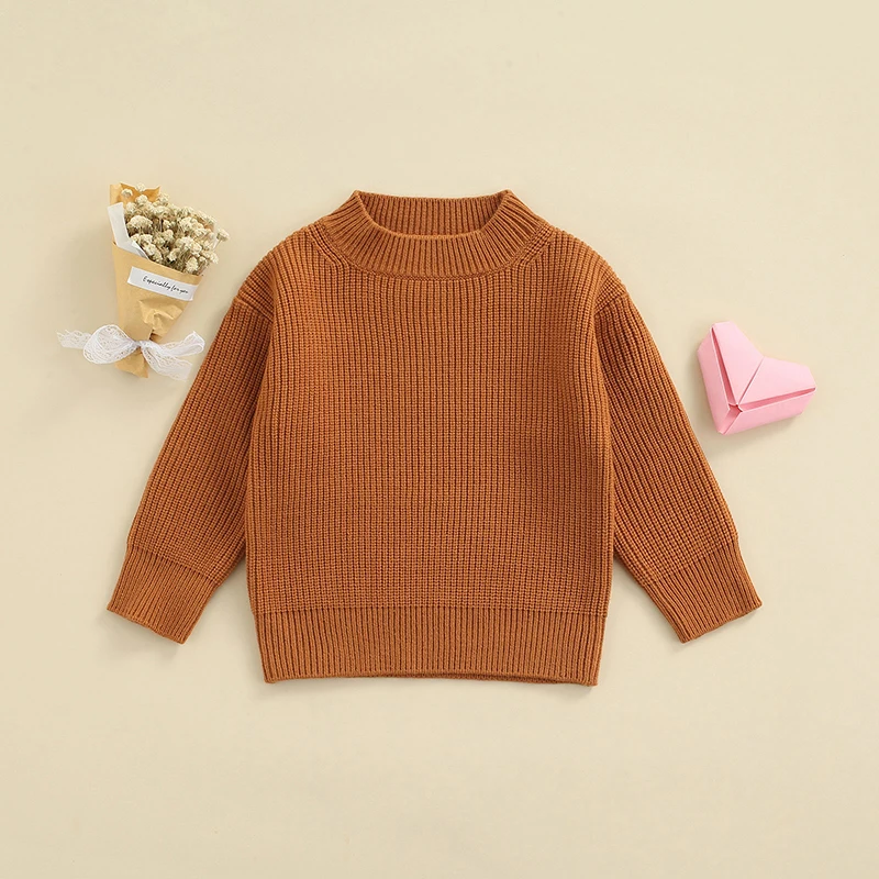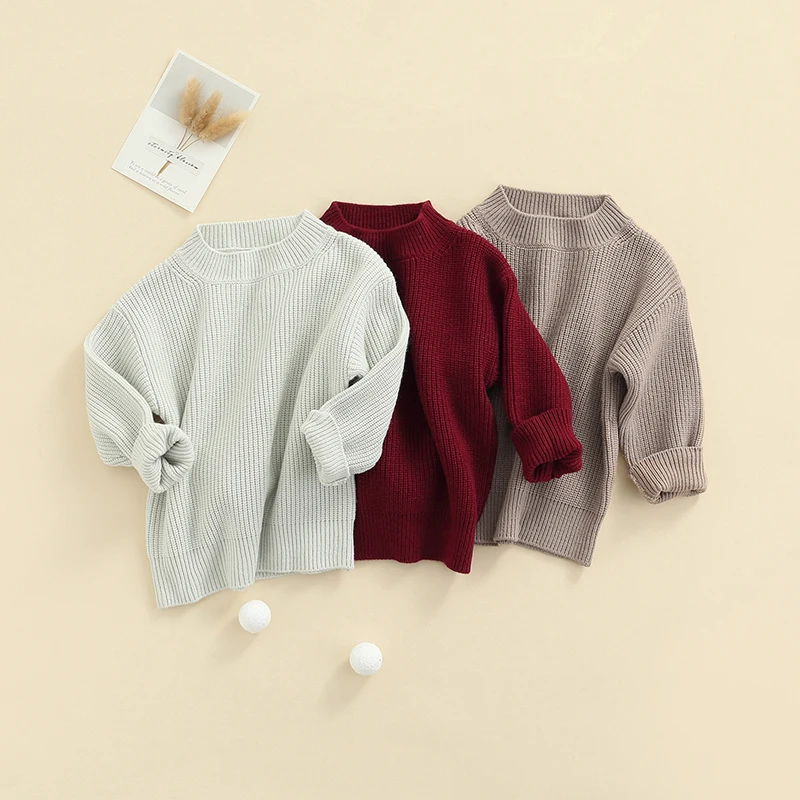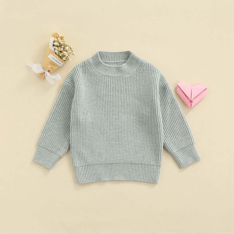 Свитера с круглым вырезом для малышей, однотонный трикотажный пуловер с длинными рукавами, топы