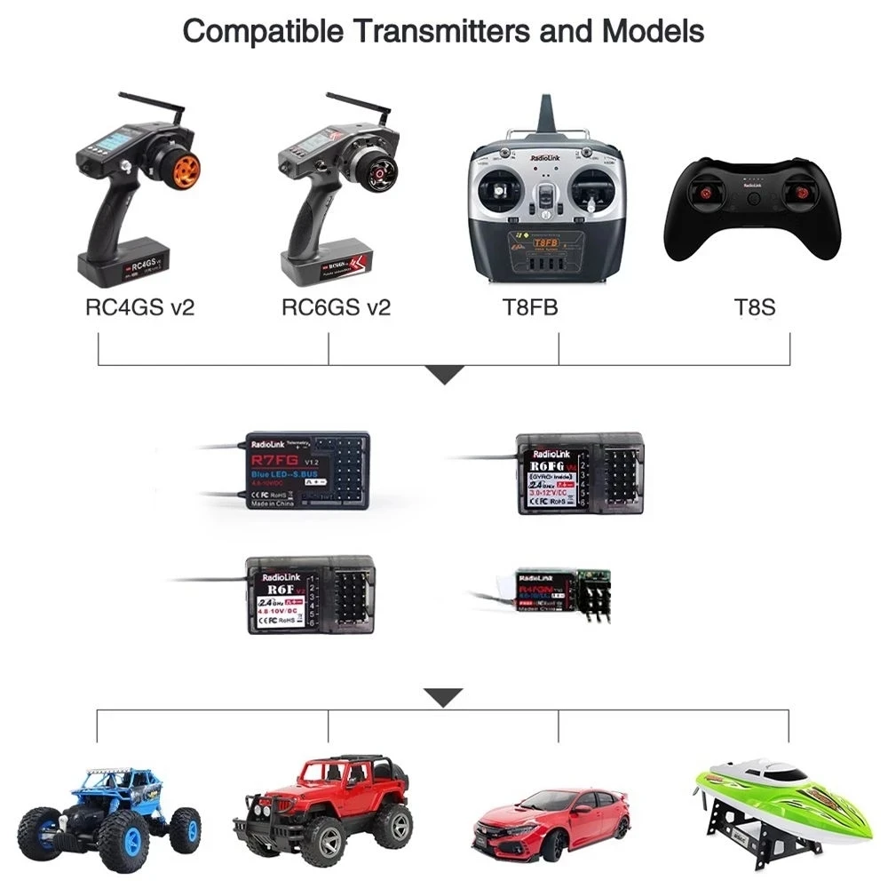 【 6 каналов: 6-канальный приемник подходит для RC4GS / RC4GS V2 / RC6GS.RC6GS V2 / RC4G / T8FB / T8S передатчик.