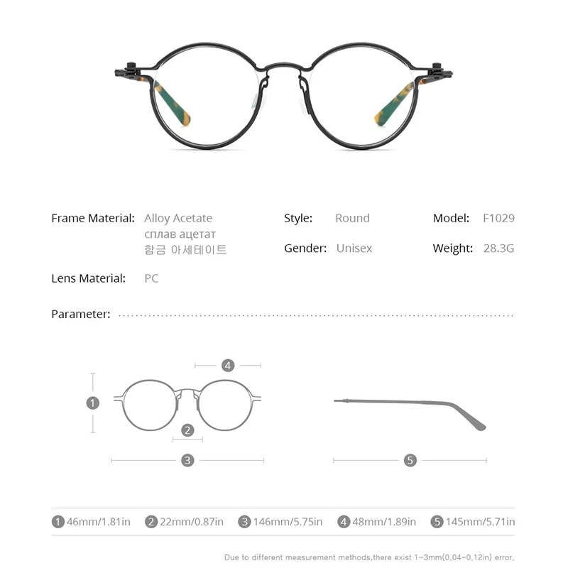 FONEX Мужские Винтажные круглые оптические очки без винтов, F1024