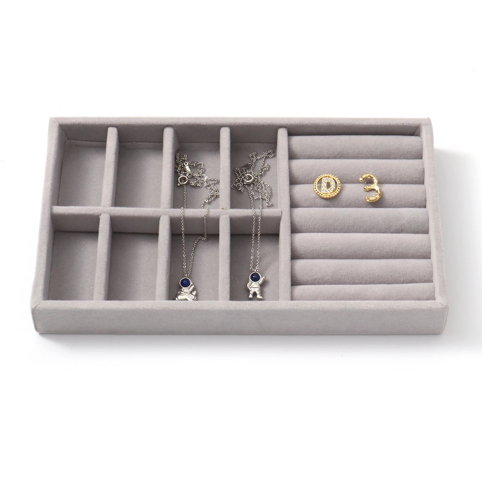 Плотный бархатный лоток для хранения ювелирных изделий, подставка-держатель для ожерелья, кольца, браслета, серый органайзер для ювелирных изделий, коробка для хранения чехлов