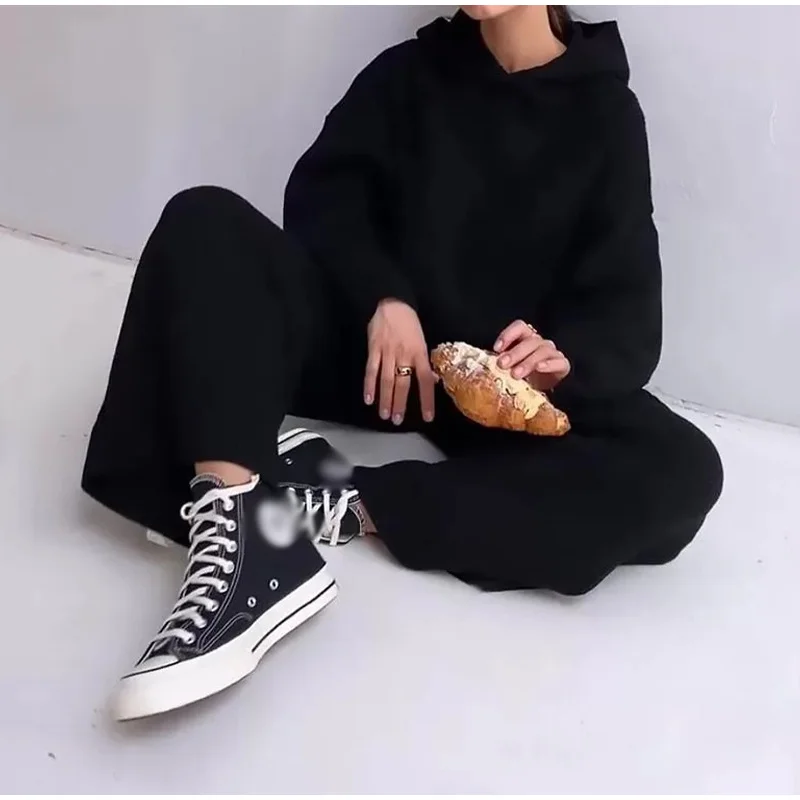 Женский вязаный однотонный костюм с капюшоном, простая и свободная осенне-зимняя спортивная одежда, женский костюм, облегающий теплый комплект из 2 предметов для женщин, 2021