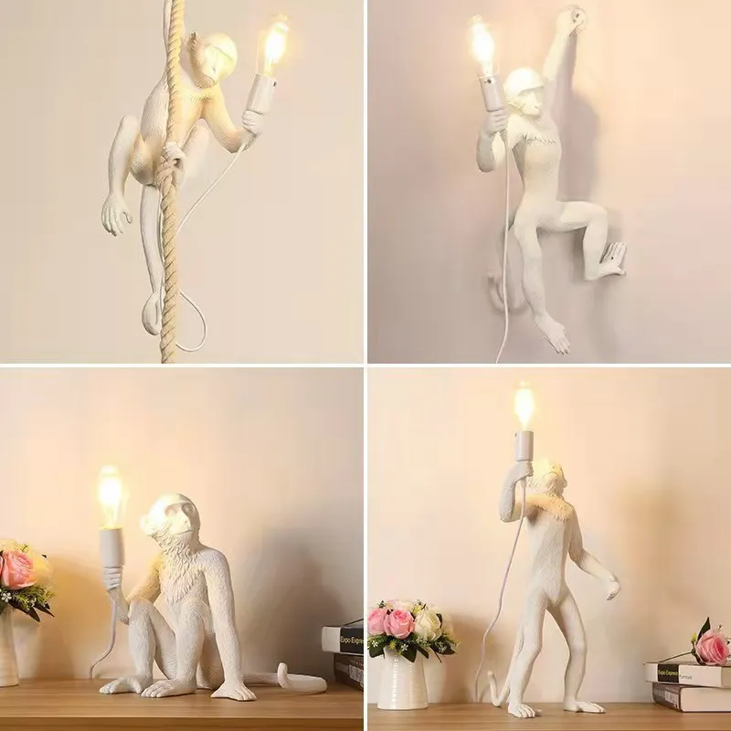 Светильник в виде обезьяны, промышленная настольная лампа в виде животного для гостиной, люстра из пеньковой веревки, скандинавские настенные лампы, декор для столовой, кухни, освещение
