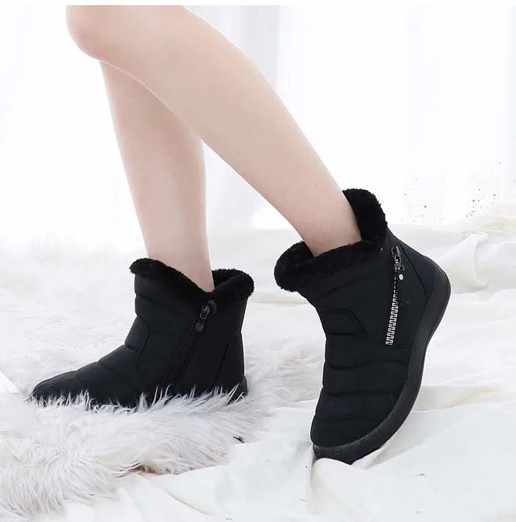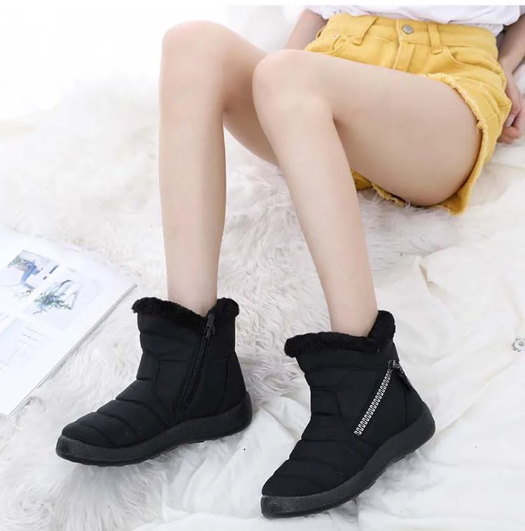 Ботинки женские зимние, теплые, черные, водонепроницаемые, 2021