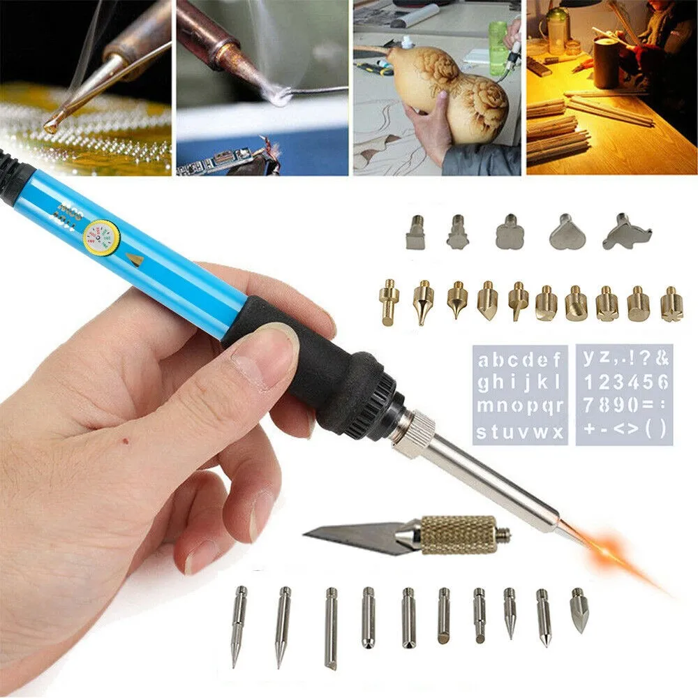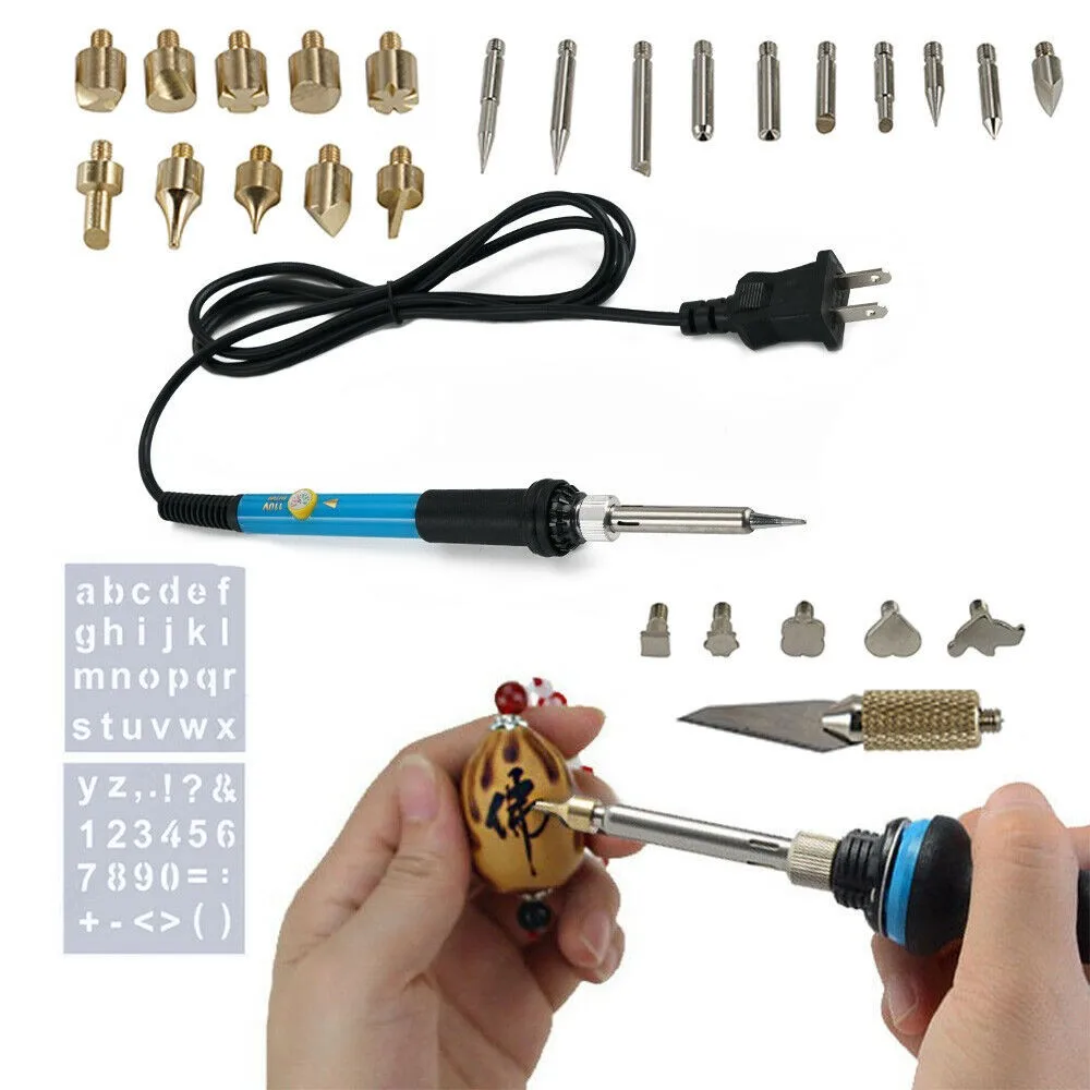 30 шт. 60 Вт ручка для сжигания дерева, паяльник, набор инструментов, искусственная латунь с наконечниками, инструмент для гравировки, устройство для сжигания дерева, резьба по дереву