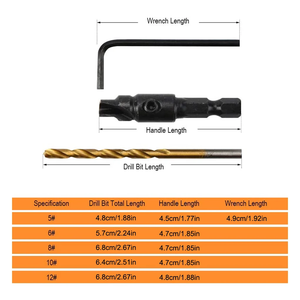 Описание:Регулируемый: вы можете отрегулировать гнездо через шестигранный хвостовик, удовлетворяя ваши различные потребности и избегая причинения вреда вашим рукам при сверлении.Широкое применение: этот тип сверла для зенковки является хорошим аксессуаром для мягкого металла, изоляционной пластины, пластины из ПВХ, деревянной доски и других материалов, что упрощает вашу работу.Высокая скорость: сверло с потайным отверстием изготовлено из быстрорежущей стали, прочное и долговечное, оно может быстро и удобно сверлить отверстия, экономя время и прочность для вас.Шестигранный хвостовик: также регулярные 1/4 шестигранный хвостовик-простых в использовании и заменить, сверло является хорошей заменой инструмента для старого или поврежденного.Посылка включает в себя: в посылка входит 5 бит, в том числе #5, #6, #8, #10 и #12, а оснащенный гаечный ключ делает вашу работу более удобной.Спецификация:Материал: Высокоскоростная сталь.Цвет: золотой.Размер: как на фотографии.Тип: #5, #6, #8, #10, #12.Примечание:В связи с неточной передачей цвета на экране монитора фактический цвет товара может немного отличаться от цвета на изображении.Пожалуйста, допускайте небольшое отклонение в данных измерений и убедитесь, что вы не возражаете перед заказом.Посылка включает в себя:5 шт. сверла для зенковки (#5, #6, #8, #10, #12)1 шт L гаечный ключ.