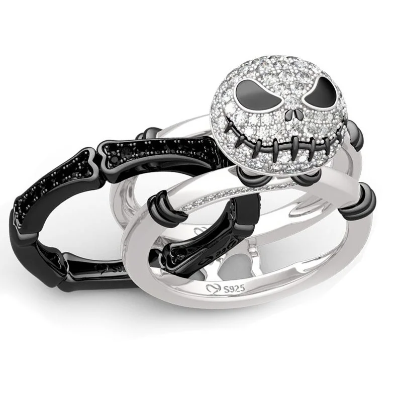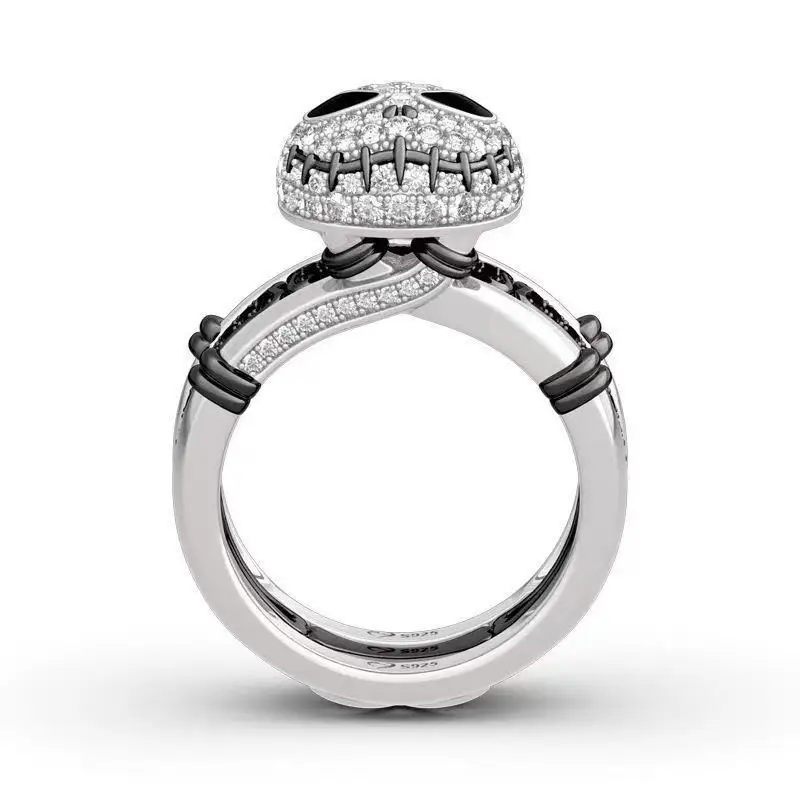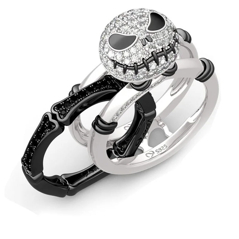 2 шт.компл. серебристо-черное двухцветное кольцо с инкрустацией черепом и кристаллами, подарок на вечеринку, кольцо в стиле панк, юбилей, готики, оптовая продажа