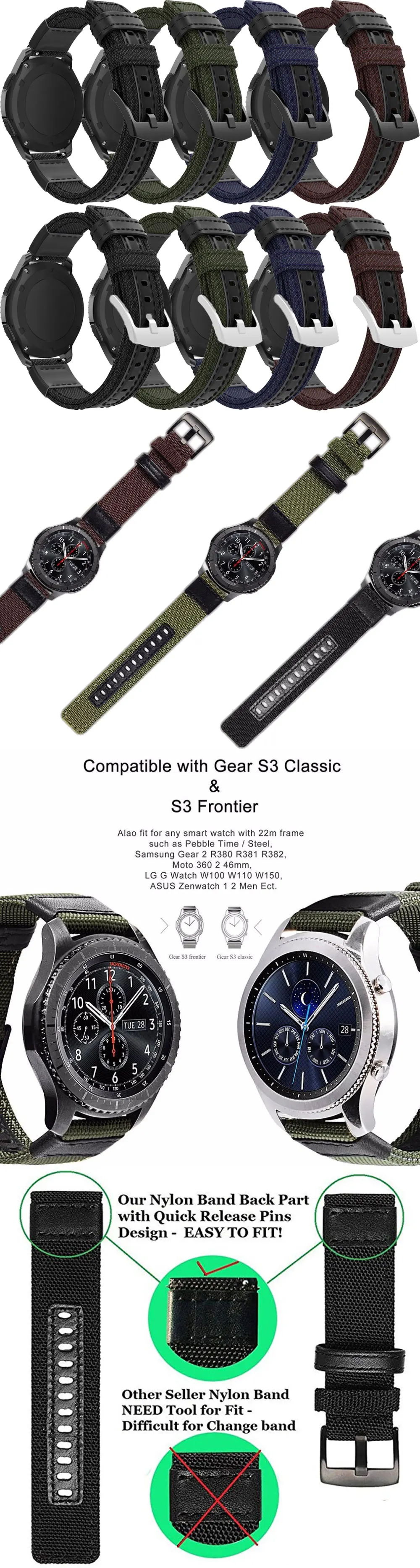 Ремешок нейлоновый для Samsung Galaxy Watch 46 мм Gear S3 3 45 мм, ...