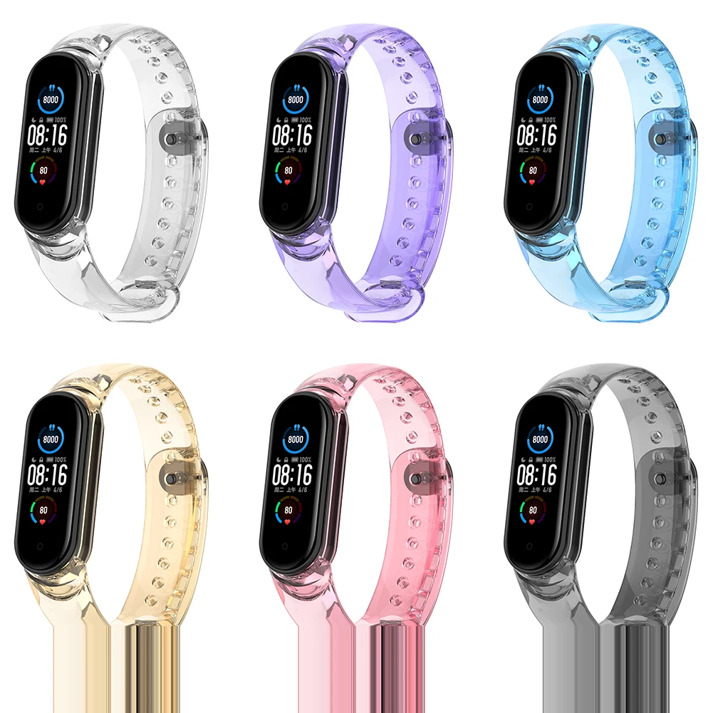 Сменный ремешок из мягкого ТПУ для Xiaomi Mi Band 5 6, меняющий цвет для легкого прозрачного смарт-браслета