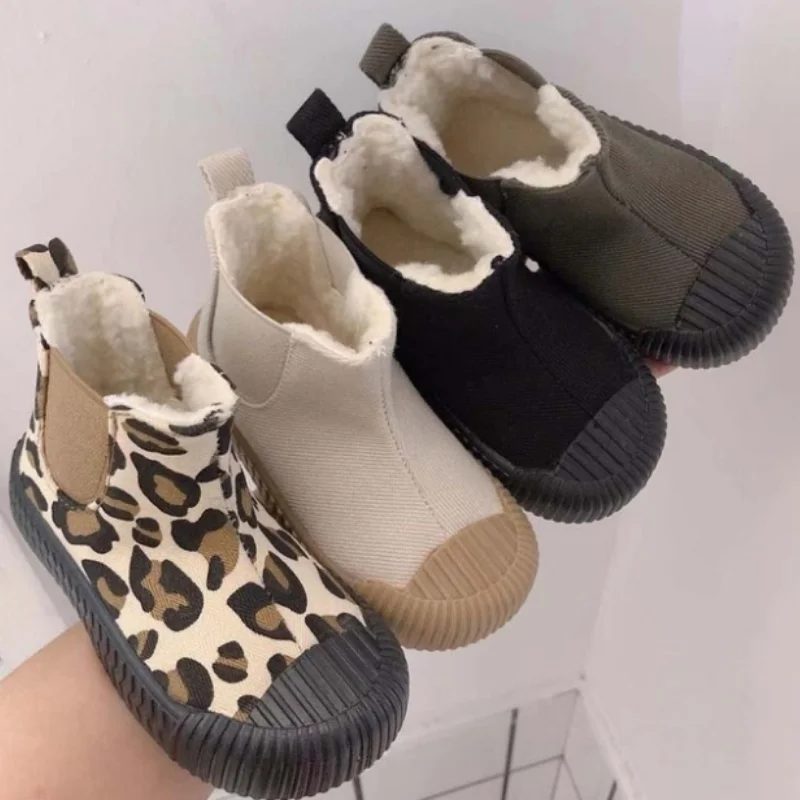 Зимние шерстяные ботинки челси для девочек-подростков, теплые модные детские ботинки, зимние ботинки для больших мальчиков, кроссовки из искусственной кожи для маленьких детей