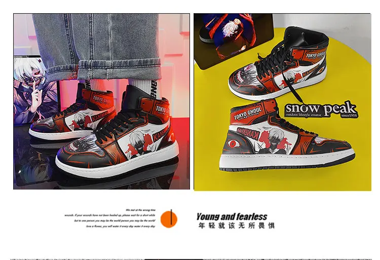 Кроссовки мужскиеженские с вулканизированной подошвой, высокие кеды в стиле аниме, Токийский Гуль, повседневная обувь для косплея, для бега