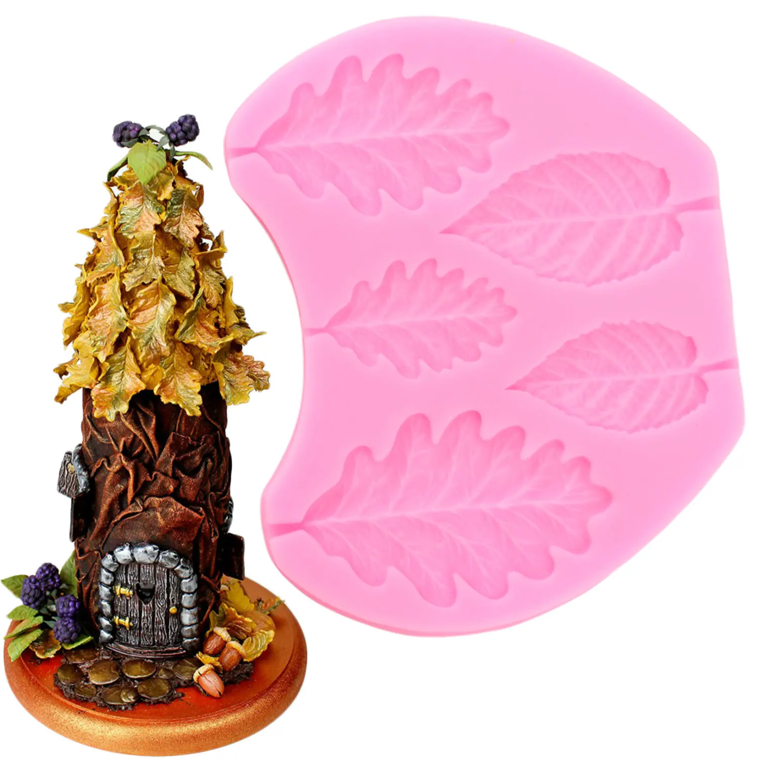 Розовая силиконовая форма в виде листьев DIY Лист кекс Топпер инстр...