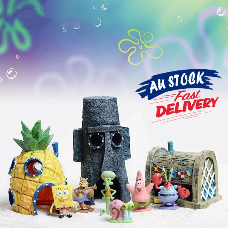 11 шт.компл. губчатая фигурка, украшение для аквариума Боб, аксессуары для аквариума Патрик, Звезда, домик для рыбок, детские игрушки