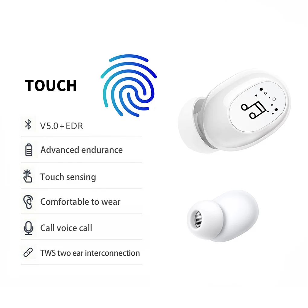Управление касанием и громкостью: этот тип наушников разработан в трогательном стиле, вы можете легко и быстро управлять им, многофункциональная одна кнопка поддерживает звонки на ответ/снижение, переключение языков и включение/выключение питания.