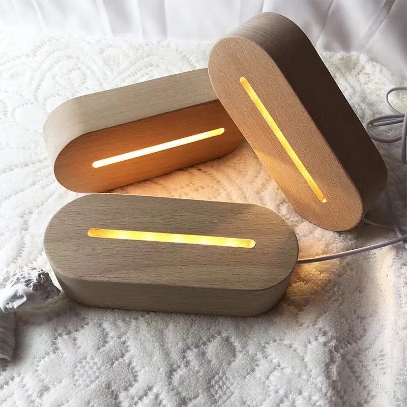 Деревянная светодиодная подставка для дисплея, USB для акрилового стекла, Настольная Ночная лампа, 3D подсветка, деревянная подставка со светодиодным освещением, Прямая поставка