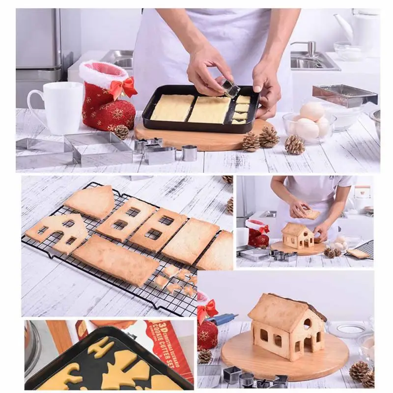 18 шт. Рождественский подарок, имбирный домик, модель печенья из нержавеющей стали, 3D форма для печенья, форма для печенья, кухонные принадлежности для выпечки