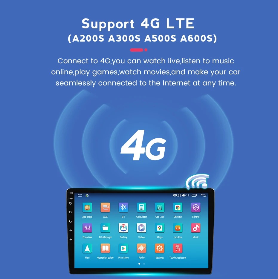 Благодаря сети 4G и встроенному Wi-Fi вы можете наслаждаться серфингом в Интернете независимо от того, где вы находитесь, что делает его возможным для онлайн-навигации/музыки/кино и т. Д. Перед включением устройства вставьте sim-карту.