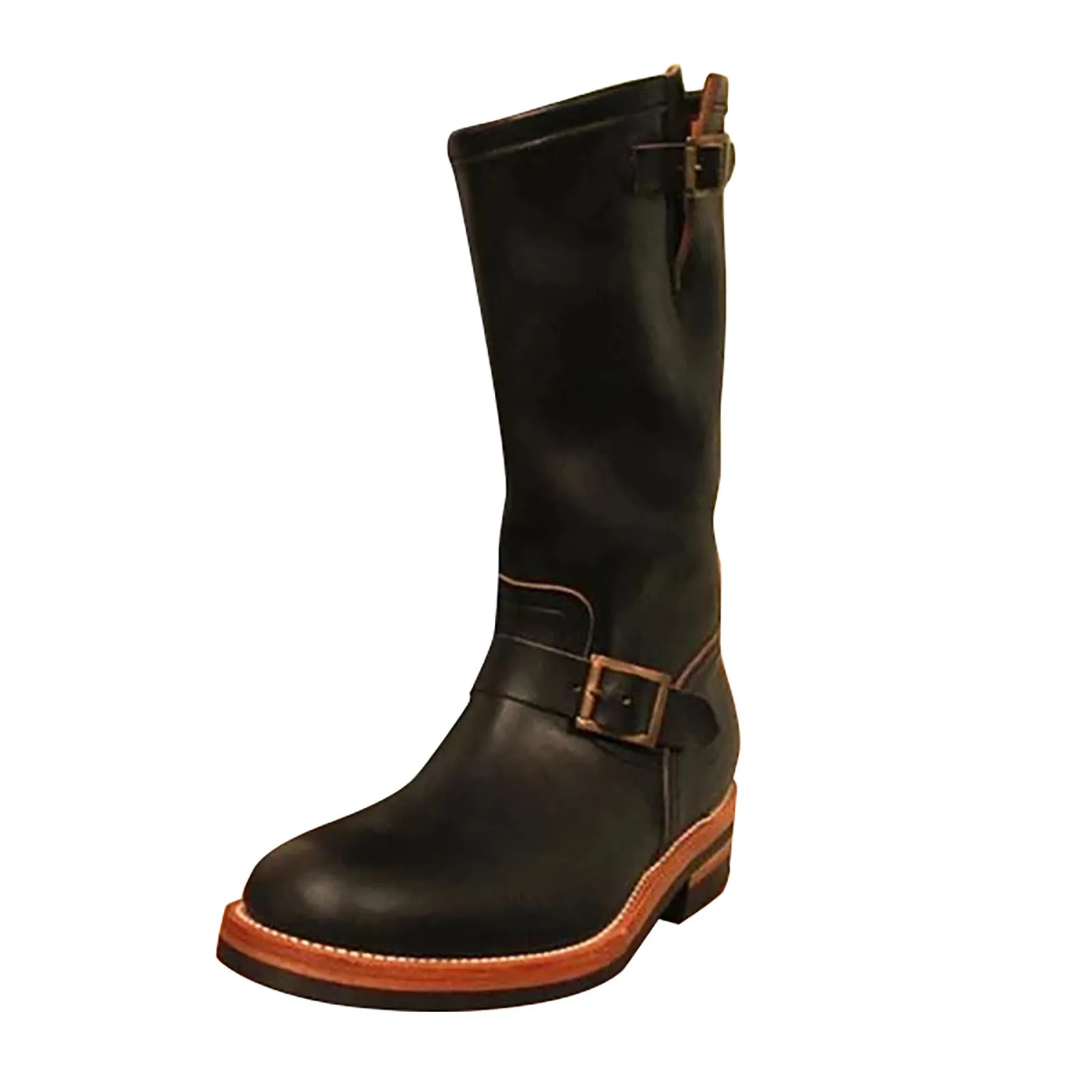 Мужские ковбойские ботинки из воловьей кожи с круглым носком; Ботинки на плоской подошве