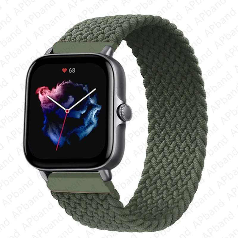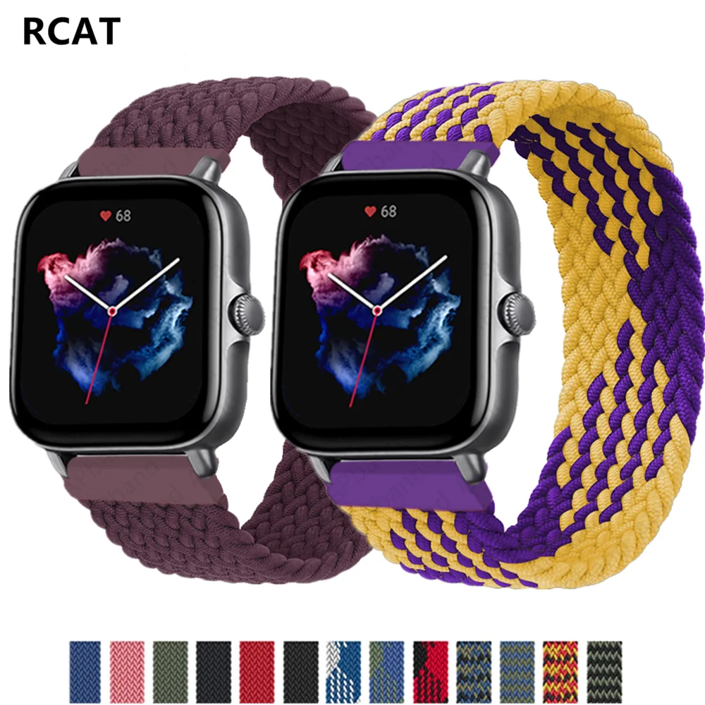 20 мм 22 мм плетеная соло-петля для Amazfit GTS22eGTS2 MiniGTR 33 Pro47 ммGTR22estratos 23, браслет для часов Amazfit ремешок bip