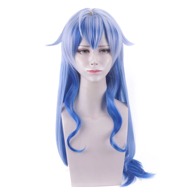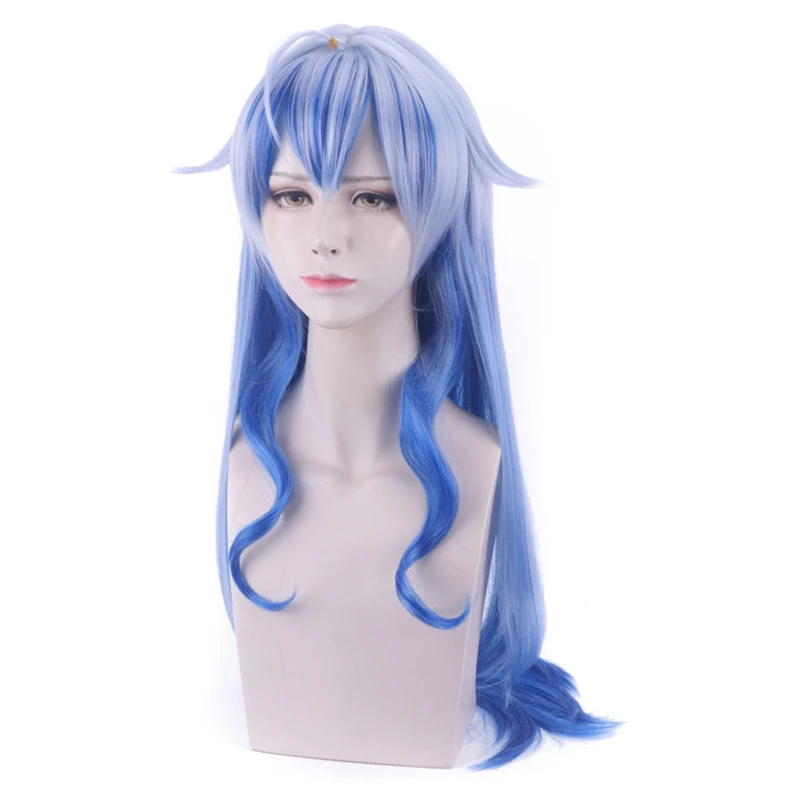 Парик для косплея Gan Yu из аниме Game Genshin Impact Project, длинные волосы с синим градиентом в стиле игры, Хэллоуин, 1:1, шапочка, 80 см