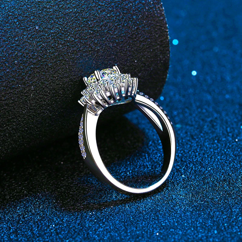 Обручальное кольцо Lab Moissanite, двойное кольцо в форме подсолнуха с бриллиантами, обручальное кольцо из стерлингового серебра, Подарок на годовщину