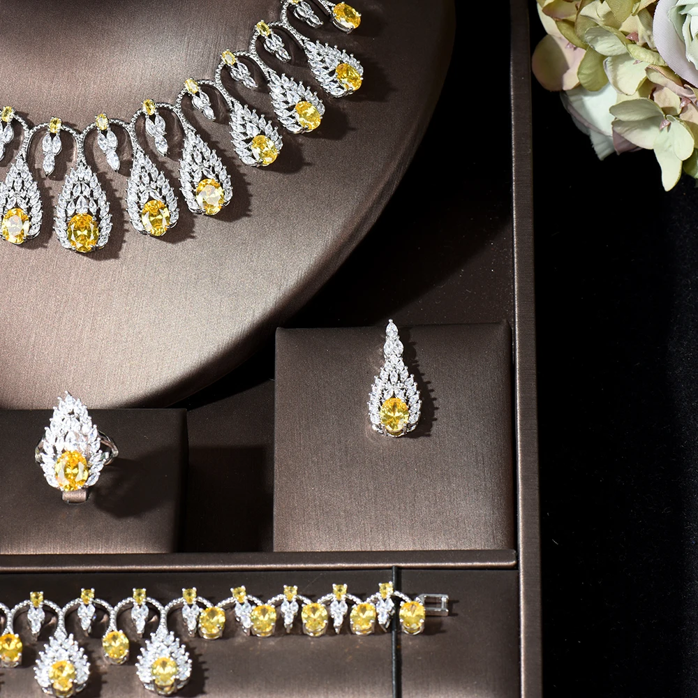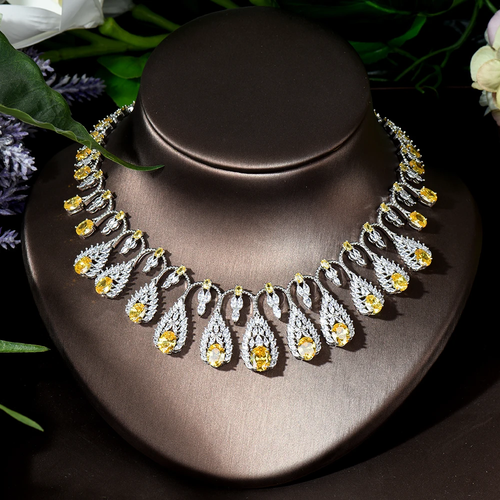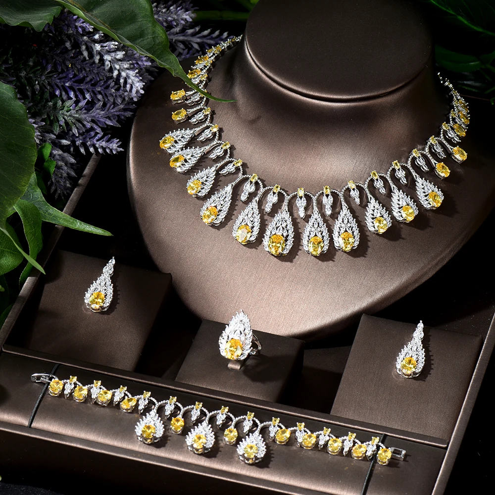 HIBRIDE большая капля воды 4 шт ожерелье и серьги набор кубического циркония ювелирные изделия для женщин Свадебная вечеринка подарки bijoux N-997