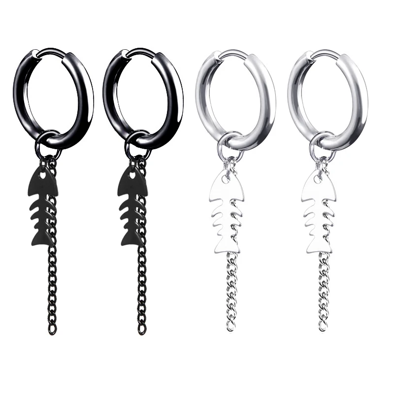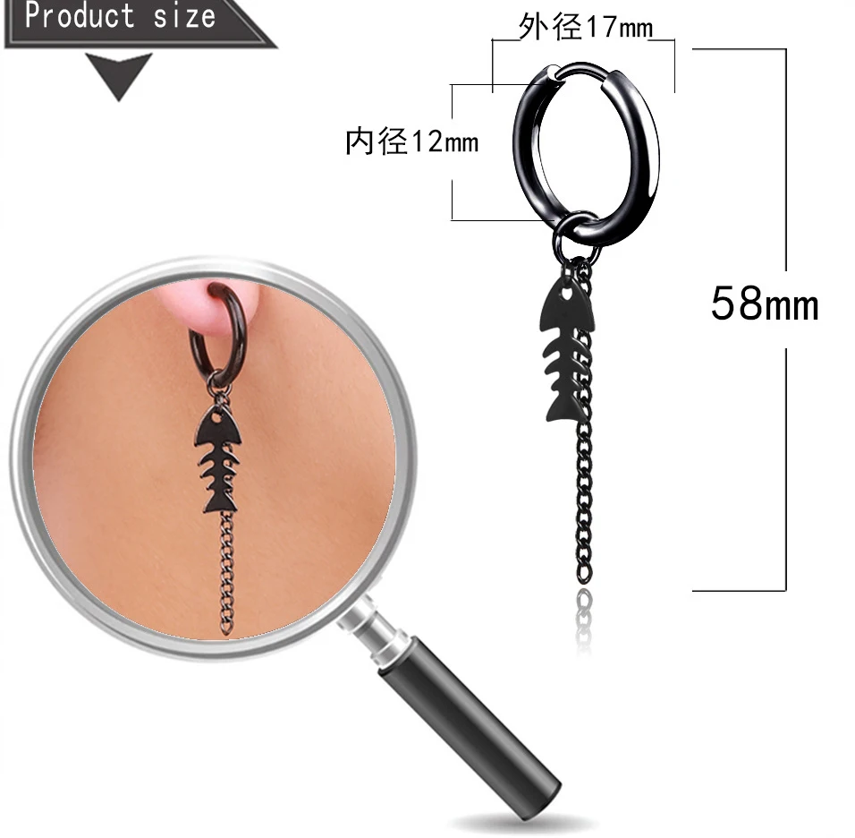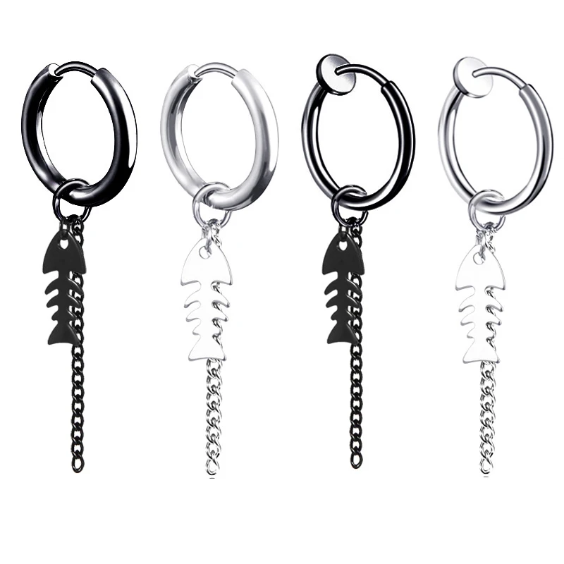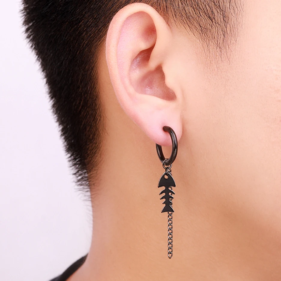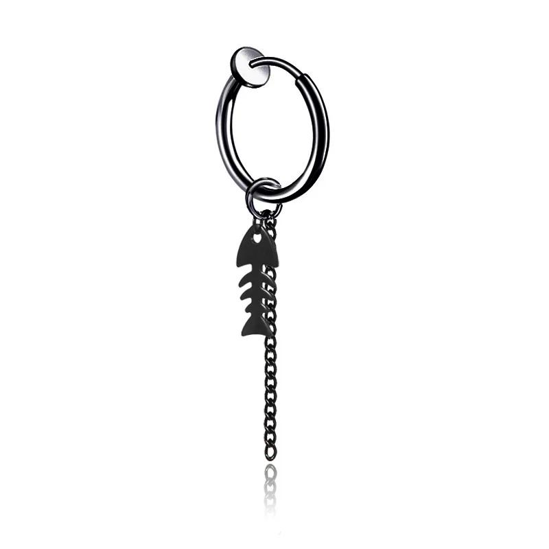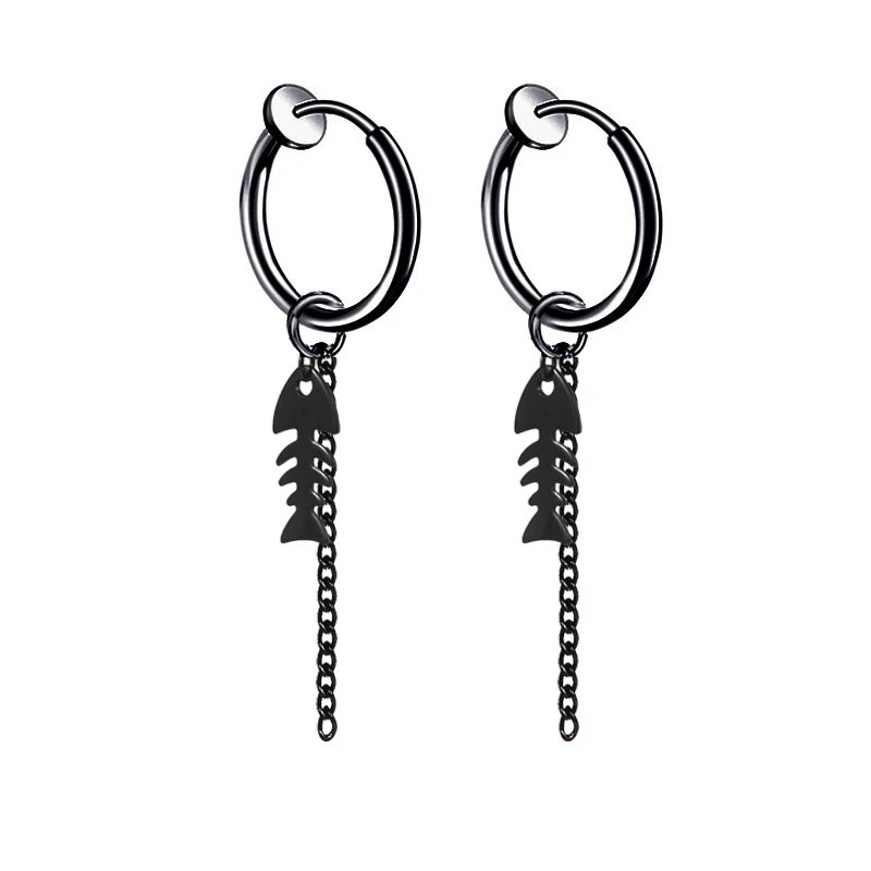 Модные серьги-клипсы, черные серьги-цепочки для мужчин и женщин, серьги из нержавеющей стали, панк-готические клипсы для ушей, без пирсинга, ювелирные изделия