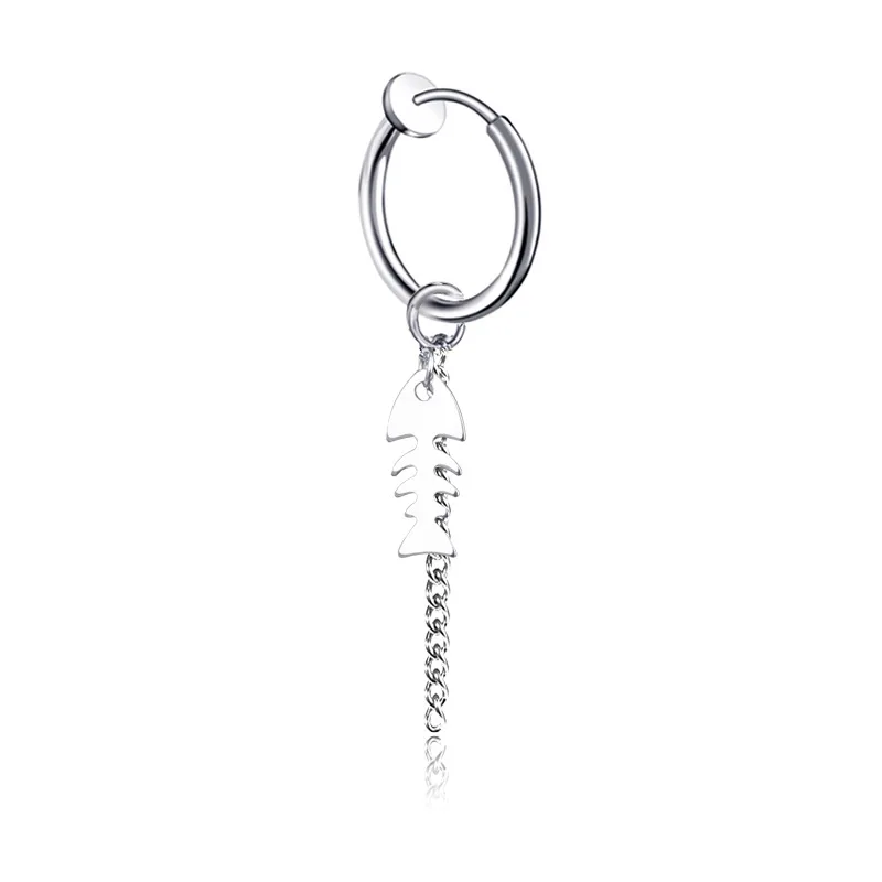 Модные серьги на клипсах, черные серьги-цепочки для мужчин и женщин, серьги из нержавеющей стали, панк готические клипсы для ушей, ювелирные изделия без пирсинга