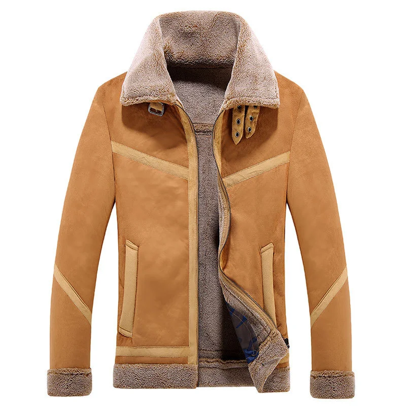 Новые мужские кожаные куртки с мехом, Зимние Модные теплые шерстяны...