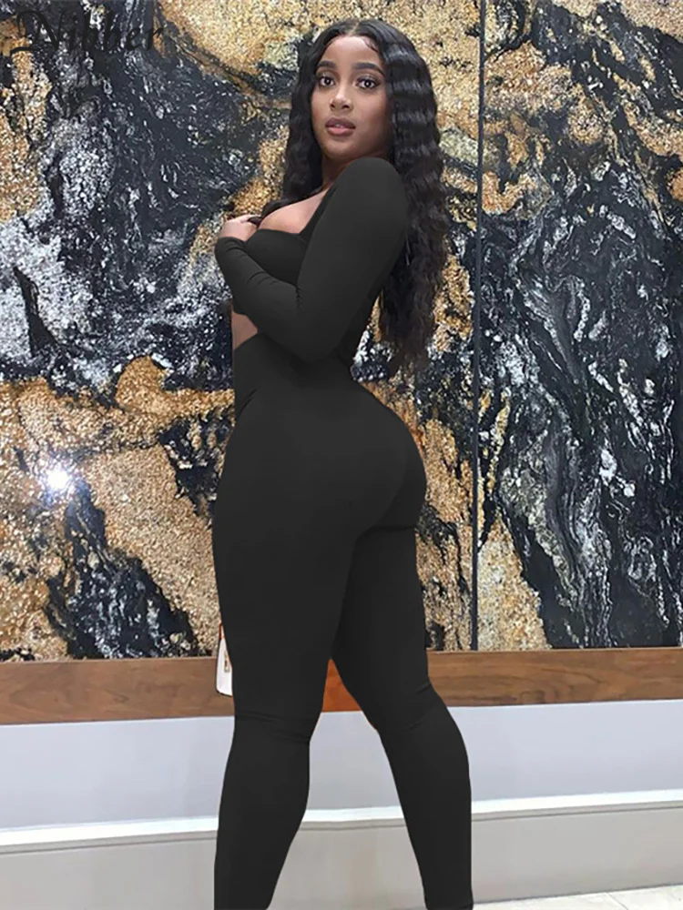 Nibber 2021 Новый Модный комбинезон с квадратным вырезом женский комбинезон с длинным рукавом 4 однотонный комбинезон женский уличный комбинезон классические комбинезоны