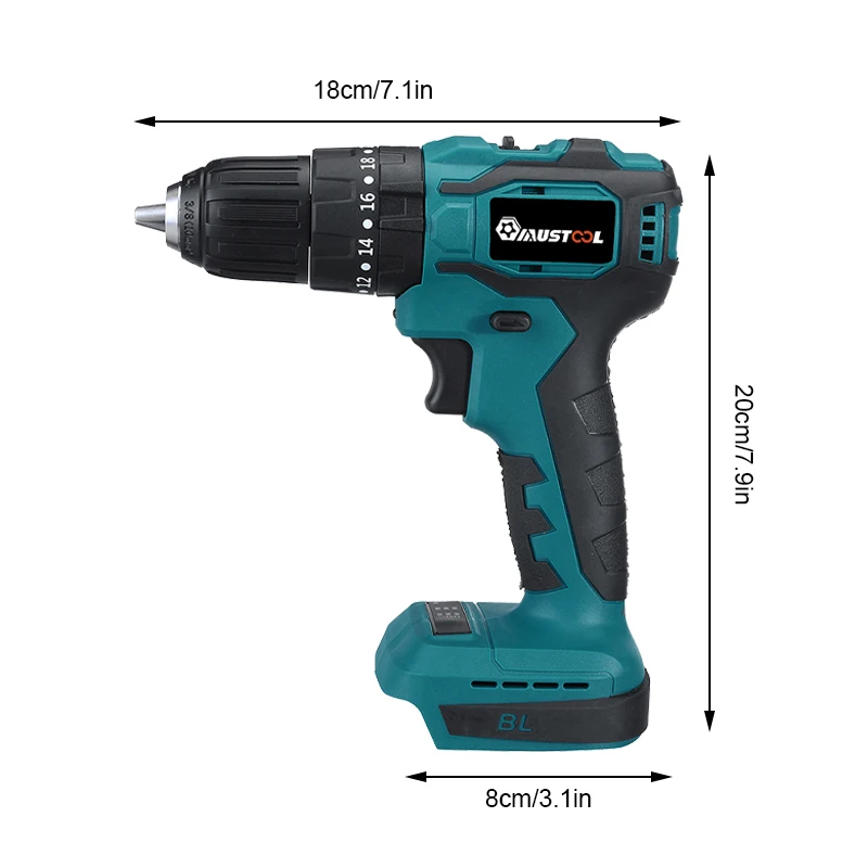 Характеристики: Название: бесщеточная дрельКрутящий момент: 25-90NMКрутящий момент: 21 + 3 Регулировка крутящего моментаРазмер патрона: 10 ммРазмер: 18x2 0 см/7.1x7.9 дюймовБез скорости нагрузки: 4500 об/минЕмкость аккумулятора: 9000 мАчБатарея: 88VFРазмер патрона: 0,4 " (10 мм)Вилка (опция): вилка стандарта ЕС/СШАЦвет: синий