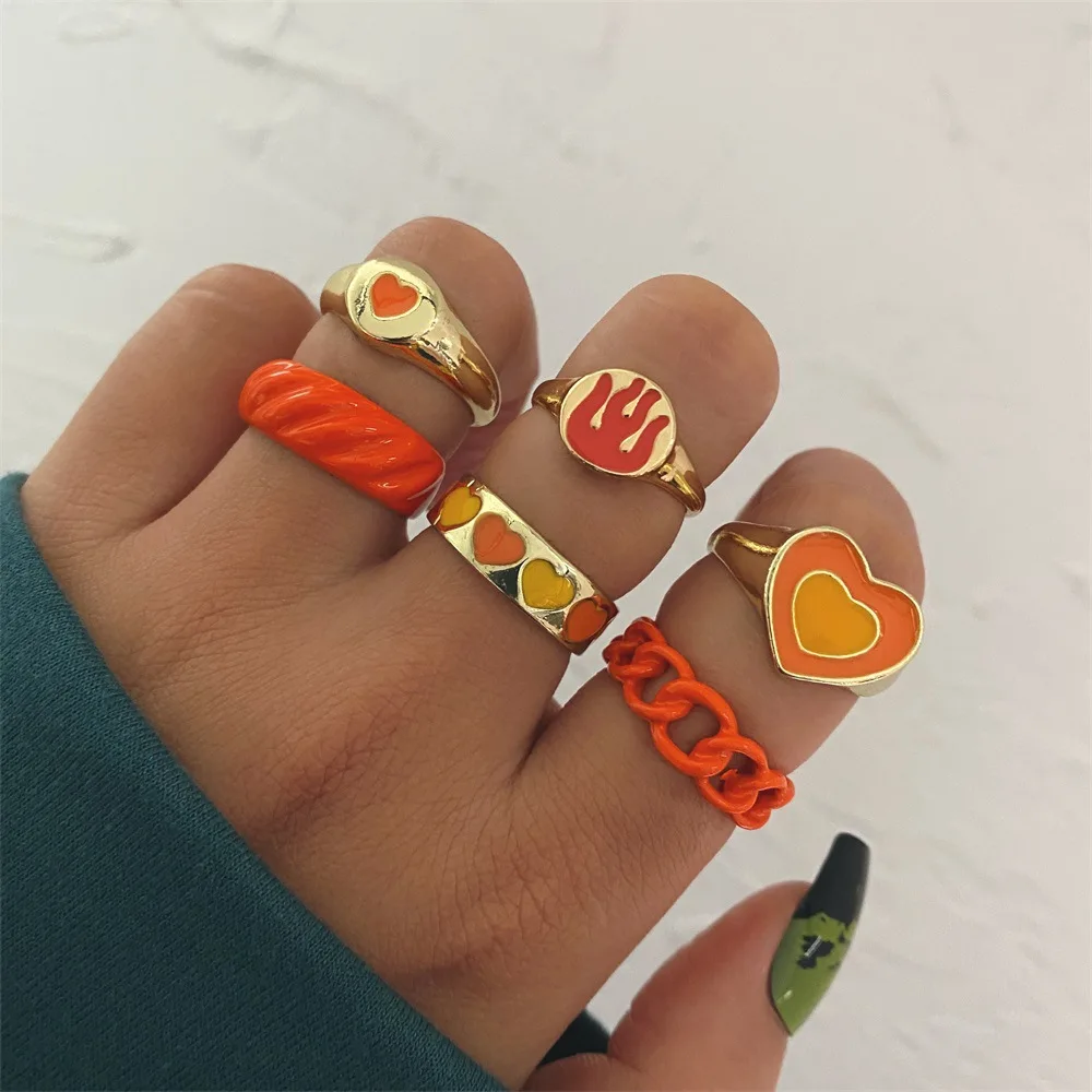 Винтажный набор эмалевых колец в форме сердца и улыбки для женщин, красочное кольцо в форме бабочки, милые кольца на палец для любителей для девочек, искусственная смола