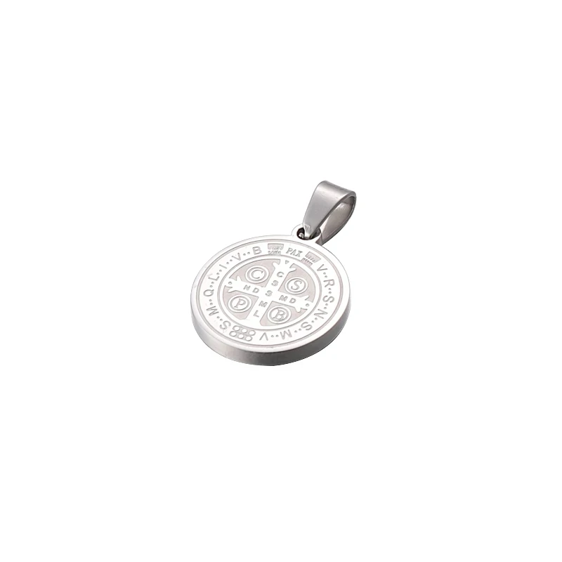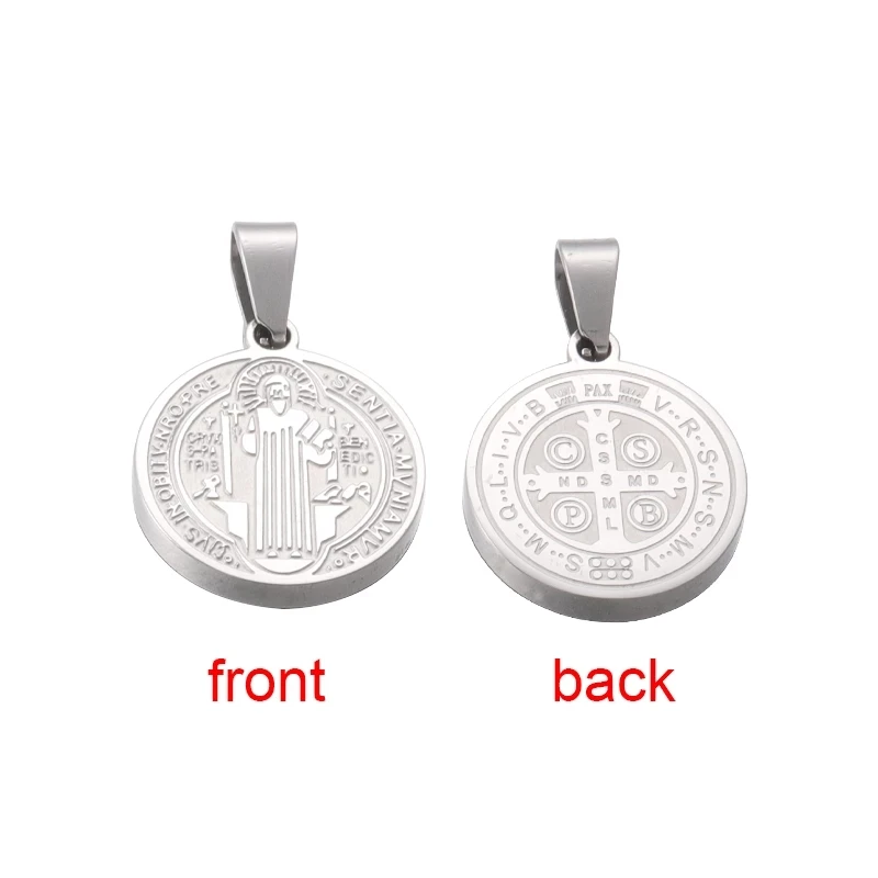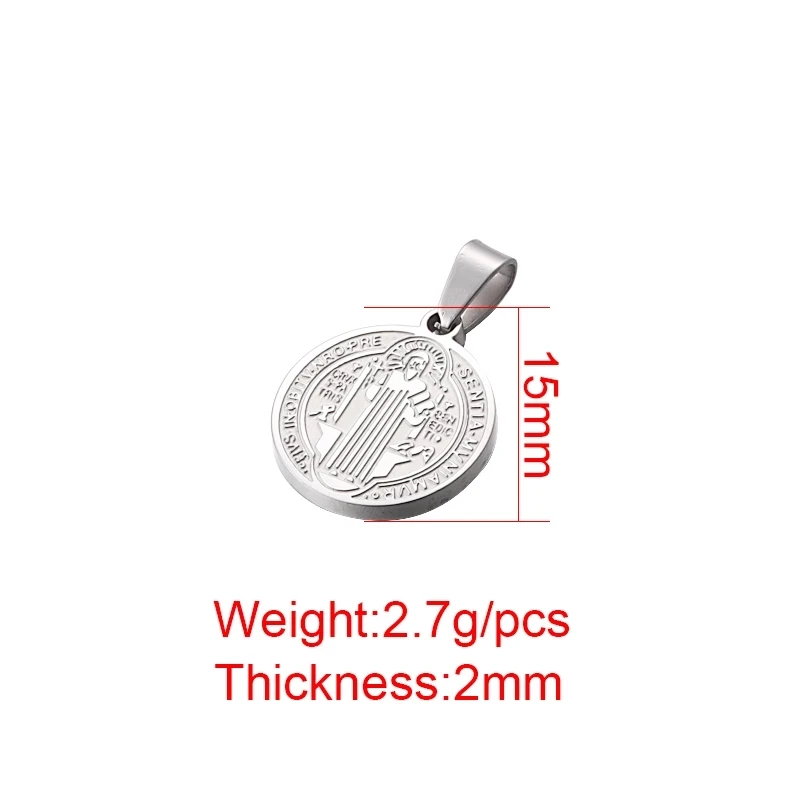 Подвески-медальон San Benito из нержавеющей стали с застежками для изготовления ожерелий, металлические круглые гравировки, подвеска с крестом в стиле ретро с Иисусом