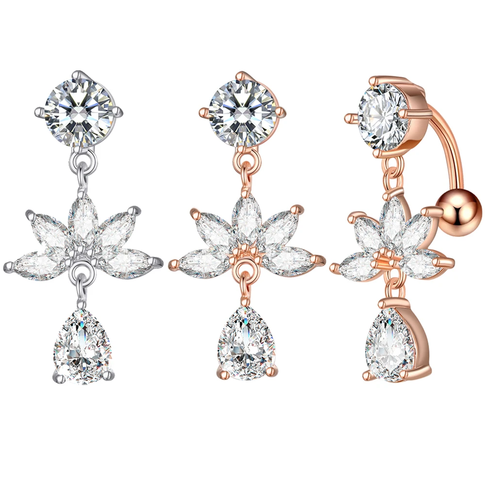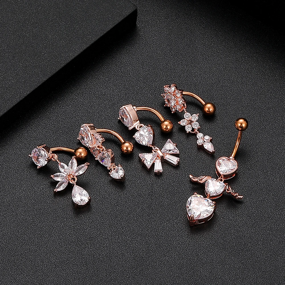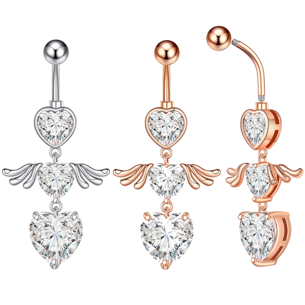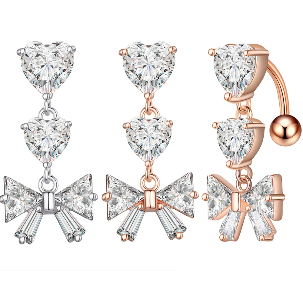 Изогнутые кольца для пупка 14G с обратным вырезом, свисающее сердце, прозрачные CZ кольца для пупка, хирургическая сталь 316L, Пирсинг живота