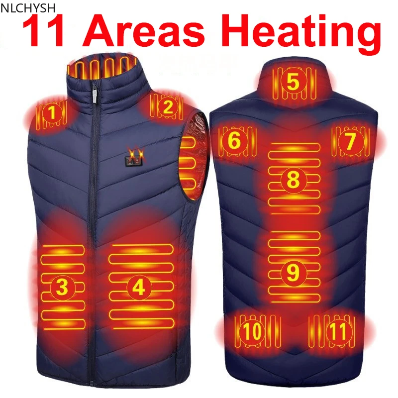 Жилет с подогревом для мужчин и женщин, теплый зимний жилет с электроподогревом, 11 областей