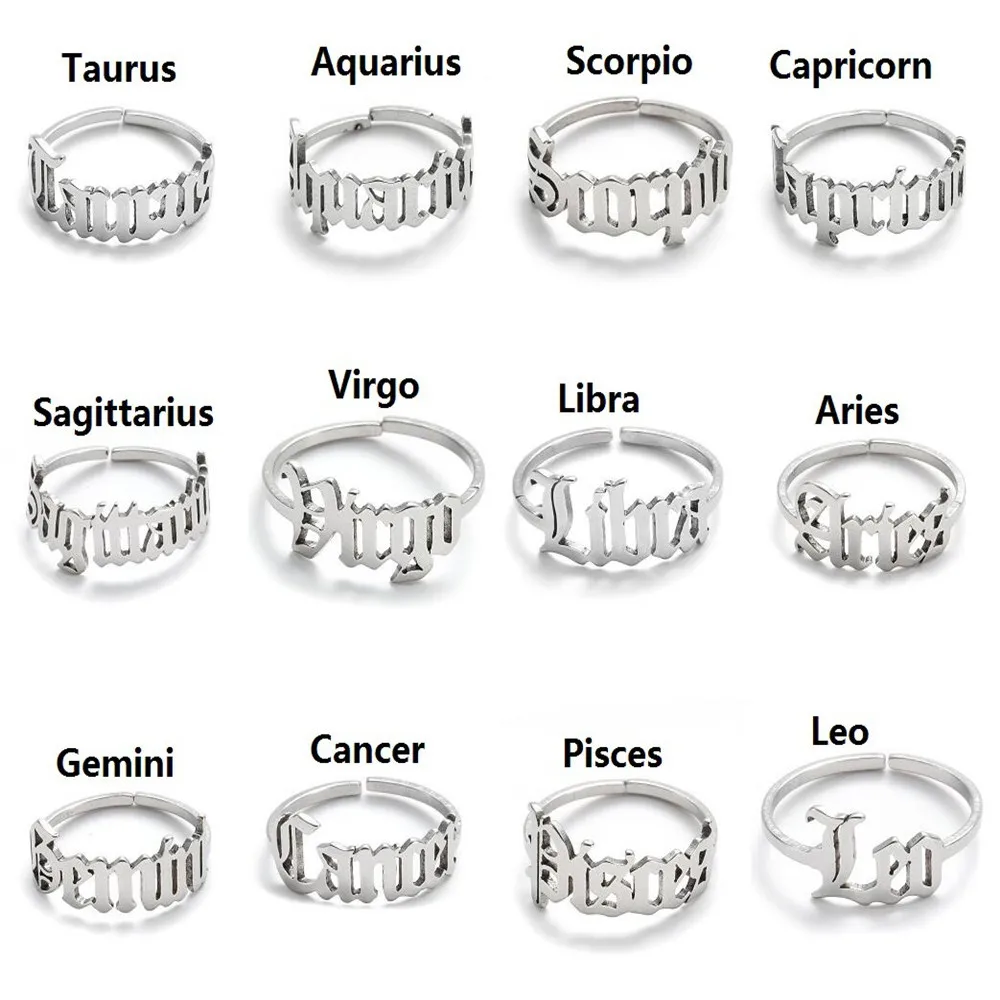 Кольцо с именем на заказ для женщин, кольца с двенадцатью созвездиями, персонализированное регулируемое кольцо из нержавеющей стали