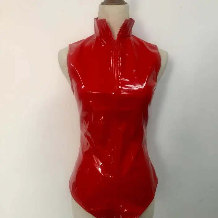 Красный комбинезон из искусственной кожи без рукавов с открытой промежностью и молнией
