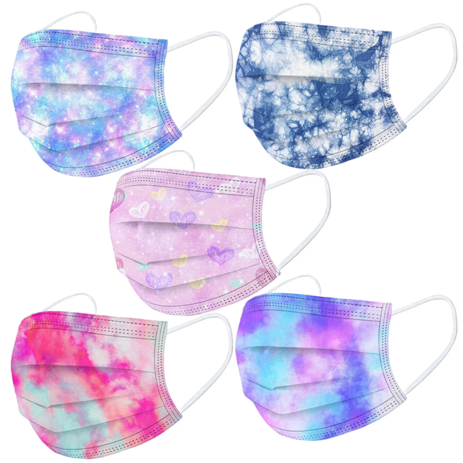 2021 взрослая маска одноразовые галстук красители печати промышленные 3Ply ушные петли маска 50 шт