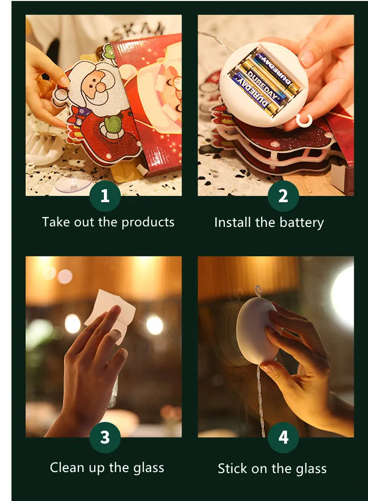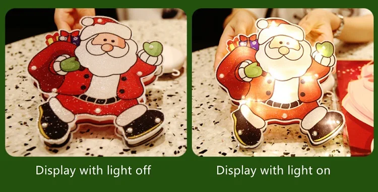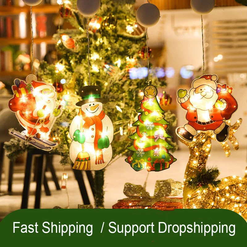 Светодиодный светильник для рождественского декора, украшения с изображением Санты, снеговика, лося, присоска для окна, X'mas Tree Decoration Lamp