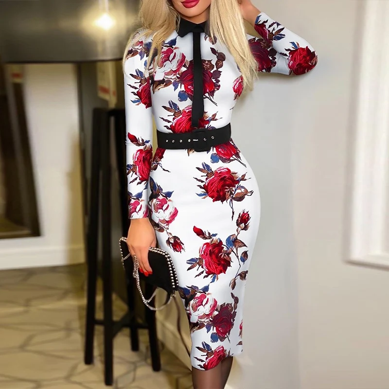 Женское облегающее платье-карандаш, элегантное облегающее платье-трапеция с длинным рукавом и высокой талией для фитнеса, Новинка осени 2022