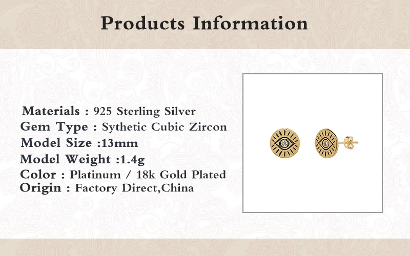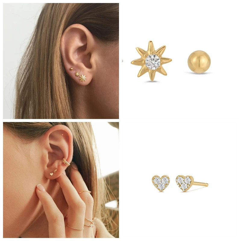 925 Sterling Silver EarringsGold/Silver Color Stud Earrings