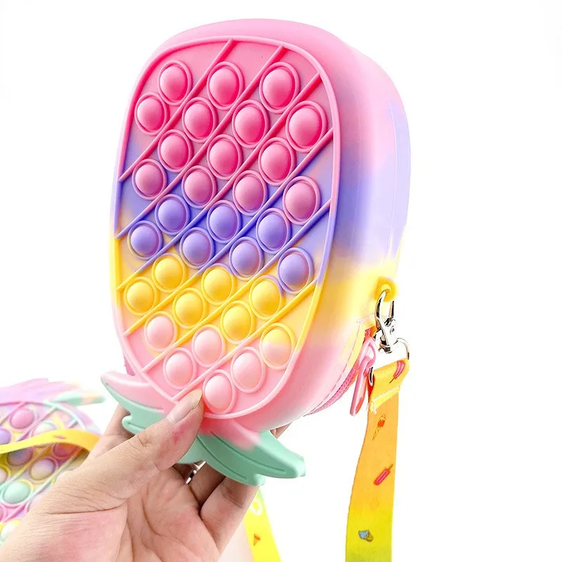 Радужный силиконовый Детский кошелек в виде ананаса с пузырьками