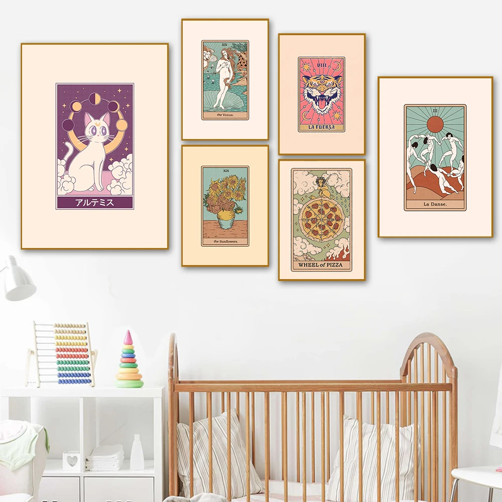 Настенный постер с изображением подсолнухов Венеры, карт Таро, кота, вина, пиццы, абстрактные картины на холсте, домашний декор для гостиной