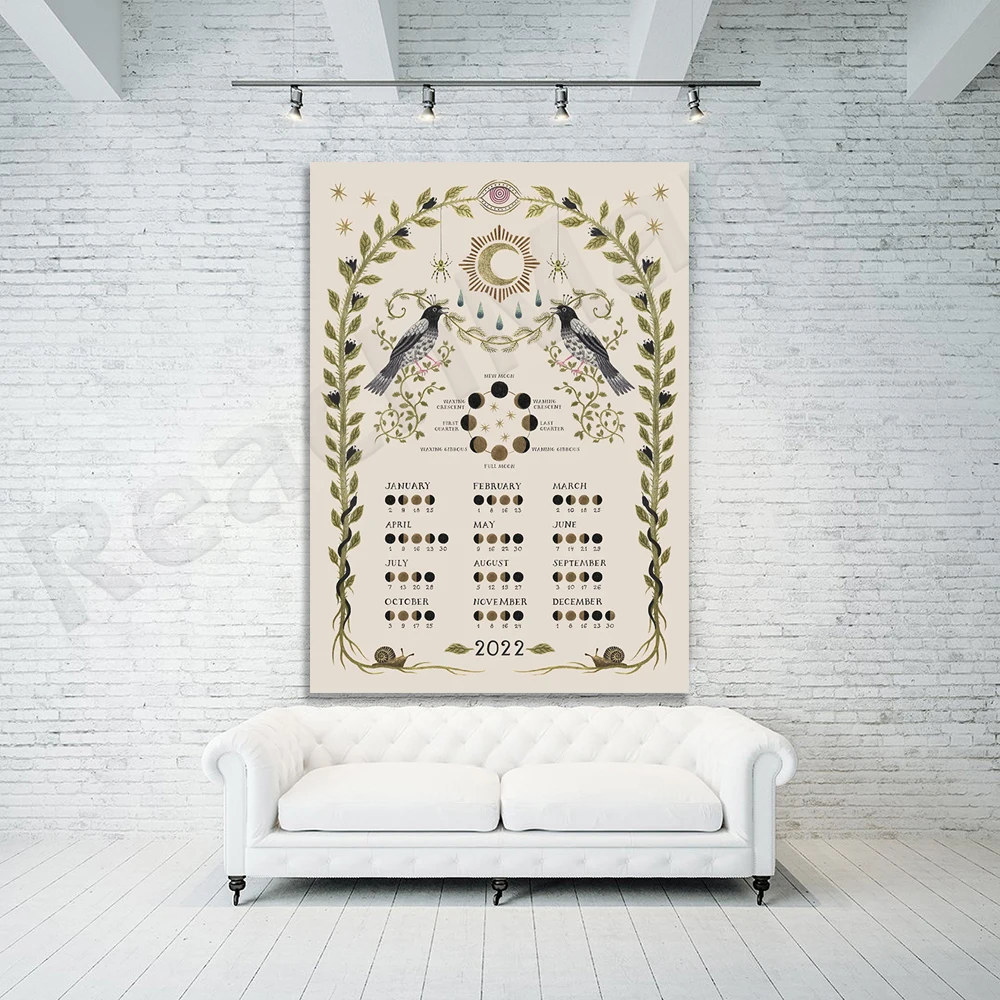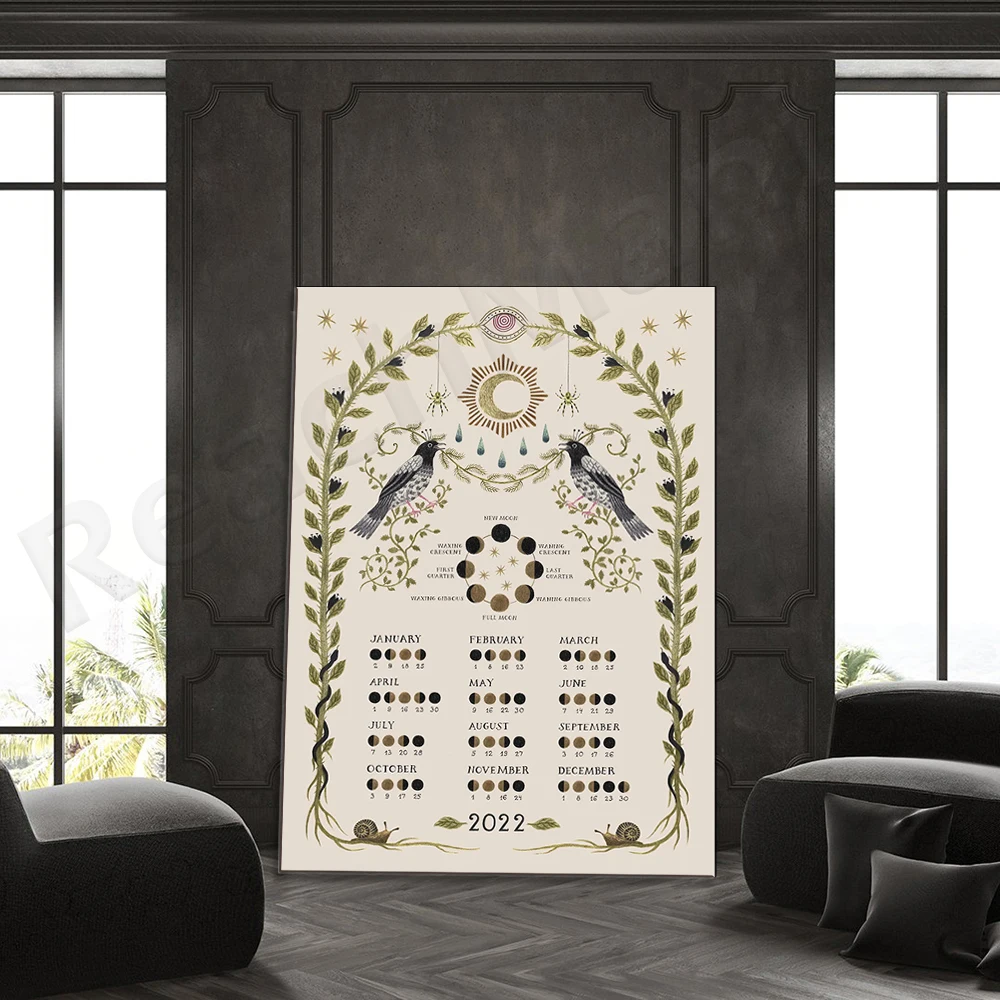 Календарь Witchy Moon Wicca 2022, плакат и печать, оккультистичный стиль бохо, лунный фаз, Декор, настенное искусство, холст, картина для гостиной без рамки