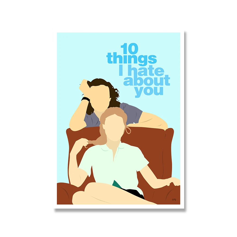 Плакат из фильма I Hate About You, Художественная печать, современный романтический фильм, иллюстрация, Мультяшные обложки, картины для кровати, комнаты, домашний декор, 10 вещей