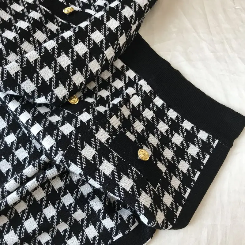 Модный большой клетчатый вязаный Топ, комплект из двух предметов, Ж...