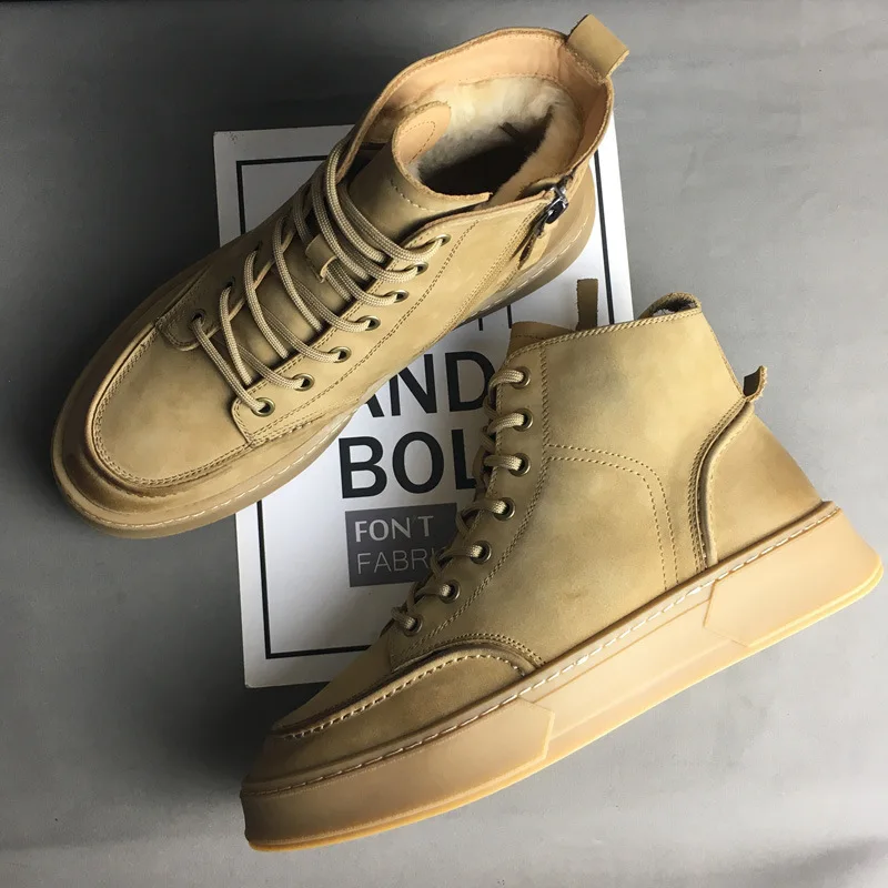 Мужские зимние ботинки ZFTL, зимние толстые теплые ботинки Martins, Мужская шерстяная прочная хлопковая обувь с высоким берцем, повседневные ботильоны