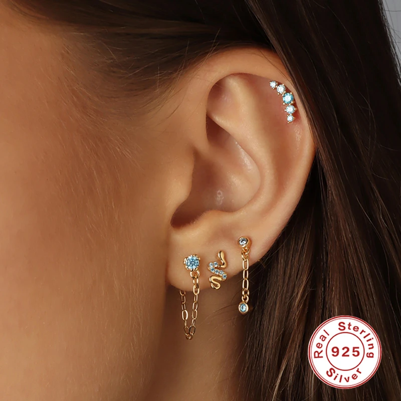 Женские серьги в виде змеи CANNER, серьги-гвоздики из стерлингового серебра 925 пробы с голубыми кристаллами, свадебные украшения, подарок, 3 шт.компл.