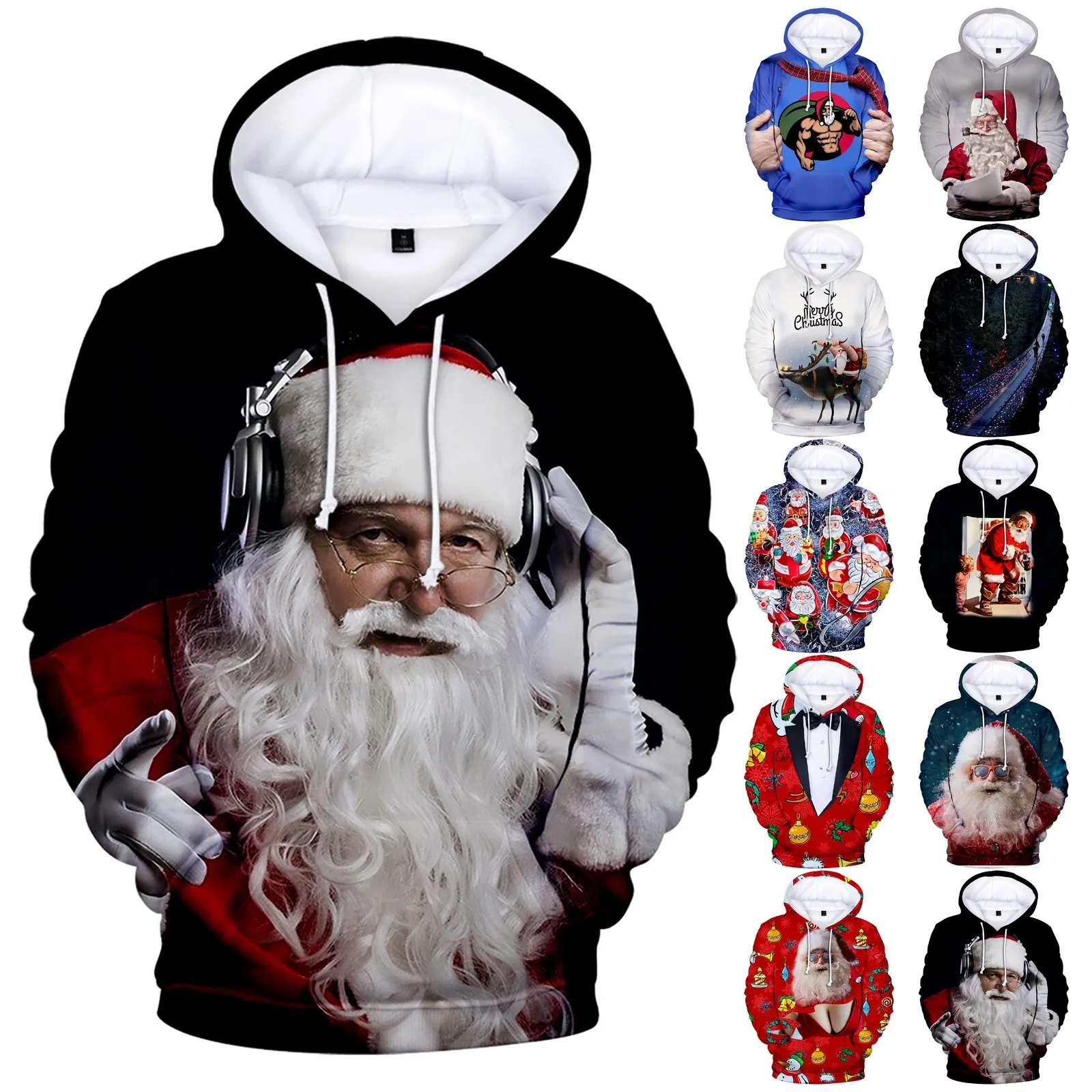 Свитшот мужской с креативным принтом, повседневная кофта с капюшоном, смешной 3d-принт Санта-Клауса, лося, в стиле хип-хоп, Осень-зима