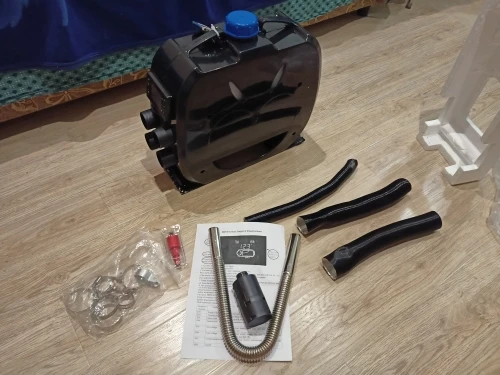 Заказывал из РФ в Москву. Пришло за неделю, на день позже заявленного срока. Получал в Пятерочке на кассе. Коробка слегка помята, но внутри все было целым. По советам бывалых всё сразу разобрал и оценил качество сборки. В целом всё очень неплохо собрано. В одном месте провод был прижат корпусом. Ну и шланг с помпой на слабый скотч приклеены, пришлось усилить. Срезал лишний облой с кромок пластика, добавил термоизоляции на провода в местах контакта с корпусом фена. Наклейка на корпусе гласит что аппарат выдает 8кw, но так ли это я не знаю. На дисплее деления только до 5. Как это проверить не знаю. Включал пока без топлива, только ради проверки. Как подключу, дополню отзыв.
