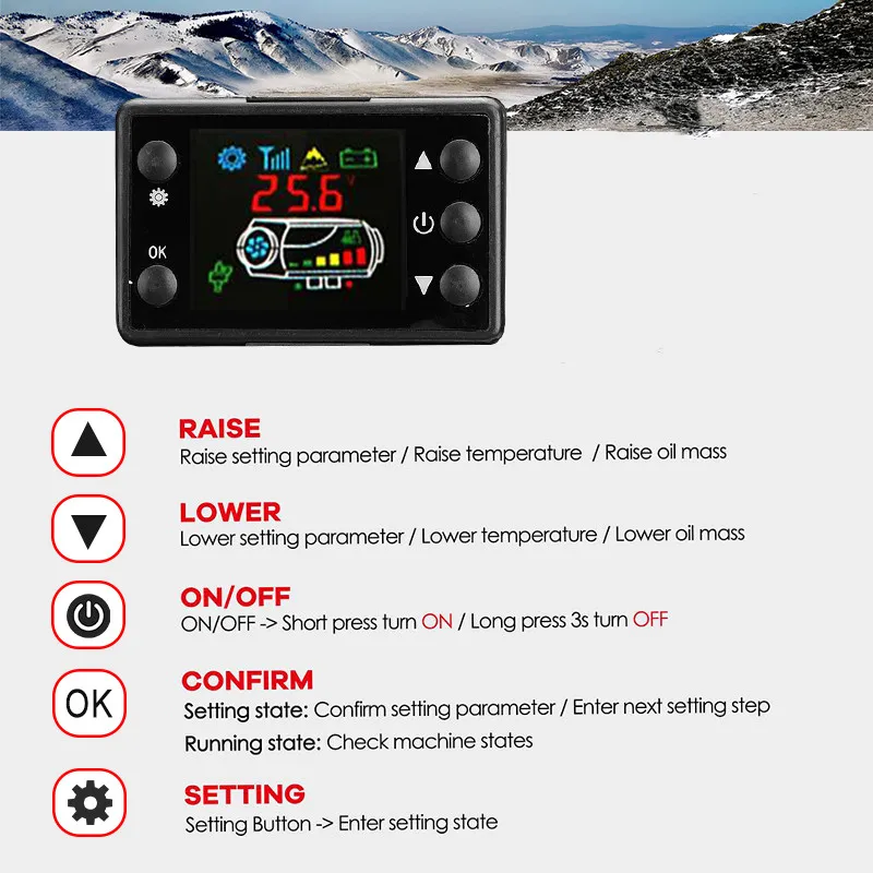 Посылка включает в себя:1 * воздушный обогреватель1 * набор аксессуаров для крепления (10 шт.)1 * инструкции по использованию1 * воздушный фильтр1 * пульт дистанционного управления1 * выхлопная труба2 * воздуховодная трубаСпецификация:-Напряжение: 12 В/24 В-Размеры: 37,5*16*38 см (14,76*6,29*14,96 дюймов)-Тип: воздушный обогреватель-Топливо: дизельная модель-Мощность: 8000 Вт-Тип переключателя: ЖК-переключатель-Цвет: черныйОсобенности:-Избавьтесь от повреждения автомобиля, вызванного резким падением температуры.-Низкий уровень шума: снижение уровня шума при минимальном уровне шума.-Простая установка: компактный дизайн хорошо подходит для использования в различных узких пространствах.-Низкое потребление топлива и энергии в течение более длительного периода эксплуатации.-С непрерывным мониторингом и диагностической системой.-Автоматическое управление комнатной температурой с установкой предварительно установленной температуры.-С системой мониторинга и непрерывной диагностики.-Может удаленно контролировать рабочее состояние, удобно и практично.-Применимо к: различным дизельным механическим транспортным средствам, таким как автомобили, автобусы, RVs, грузовики, инженерные транспортные средства и т. д.-Функция плато, когда высота увеличивается, автоматически переключается в режим плато.-Топливо поступает из бака транспортного средства.Примечание:-Замеры сделаны вручную, поэтому возможны 0,5-1 см из-за различий в связи с тем, что измерения выполнены вручную.-Из-за светильник экране монитора фактический цвет, цвет товара может быть s светильник ly отличается из-за характеристик монитора компьютера.